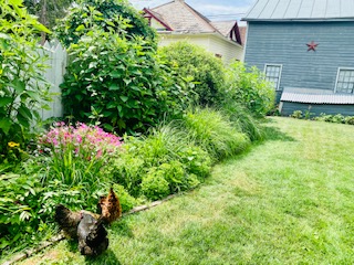 There is something cathartic about working these old flower beds. Sure, there is the exercise value, the vitamin D intake, and even the sense of accomplishment that comes from such labor. I sit there and think about what they looked like in 1879. Were they full? Did they have nothing but roses? Did they send one of President Grant’s nieces or nephews out to weed in this exact same spot? Did he stand on the porch with a cigar and declare, “how beautiful the roses are at this time of year”? Then…our dog, Jack comes over and lays in the very same flower bed where I am pruning back the basil–squishing it flat. Once thing I’ve learned since moving here is patience. Nothing is perfect in an old home. It never will be perfect inside nor out. Our gardens are no different than the inside of the house. Yep, not perfect. Just as I get one completed, the others need some attention. I guess I was meant to be here and learn this lesson. (I likely need more practice!)